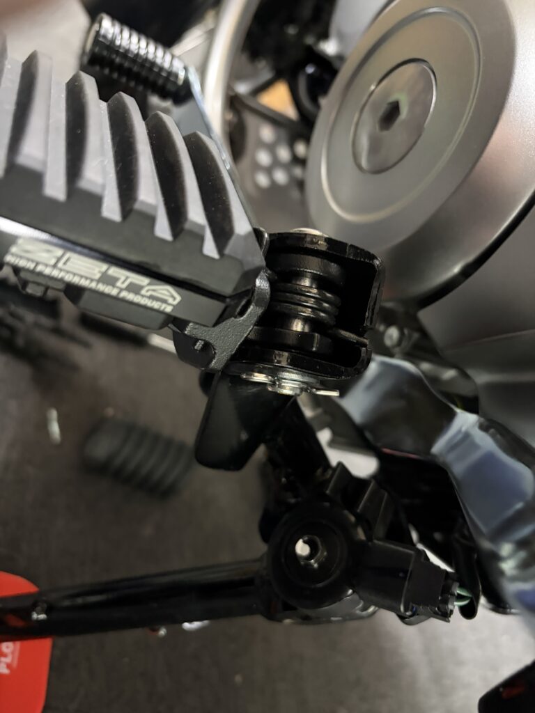 純正ステップも全く同じ方法なのですが、このステップがゴツイのでステップが動くと干渉して塗装が剥げます。