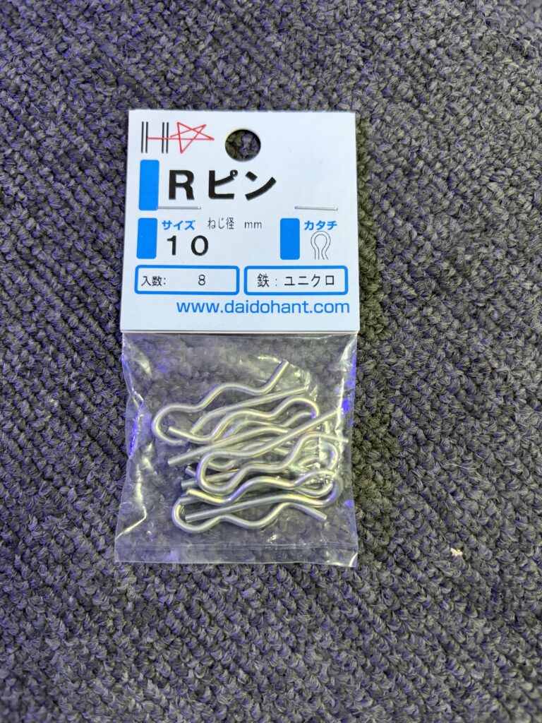 元のピンは使えないのでRピンにします。10mmだったのでそれっぽいのを買ってきました(笑)